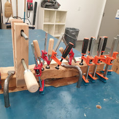 Untitled (2022). Corner table. Wood, Glazed ceramics