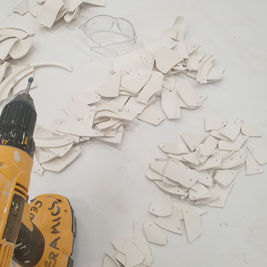Glazed ceramics, strings, marble, rug. 120’(H) x 84’(W) x 84’(D)